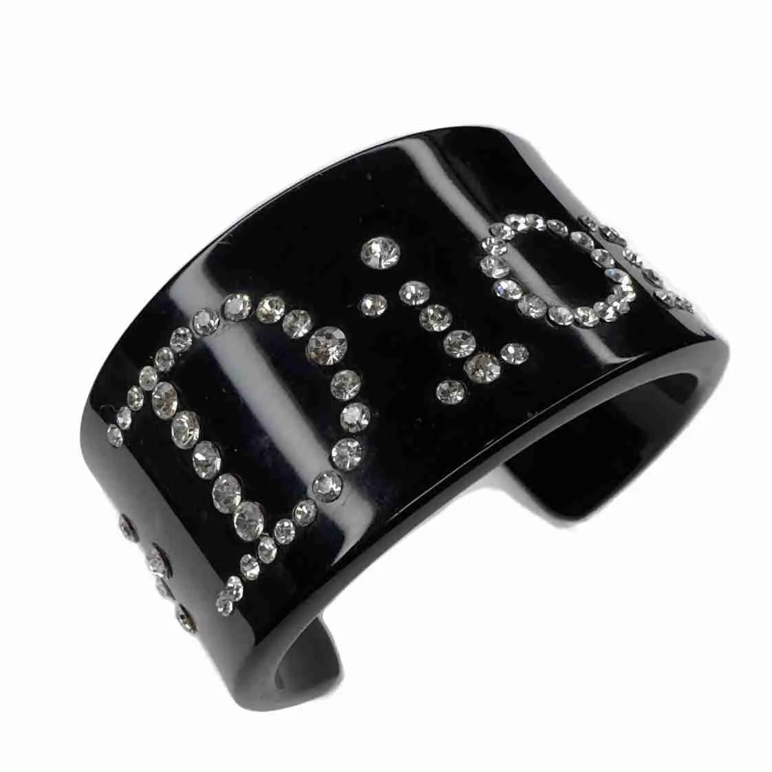 Dior acrylic black clear rhinestone bangle from early 2000's era.